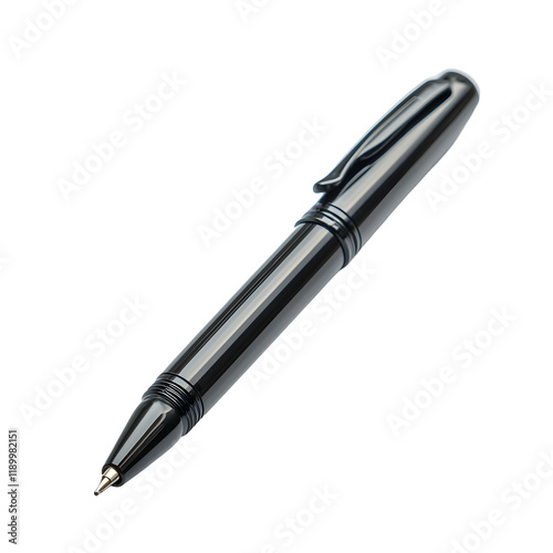 Sleek Black Metallic Pen on White Background