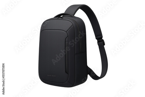 Sleek black modern sling bag isolated on transparent background, convenient.