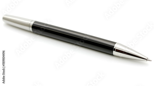 Sleek black pen with silver accents isolated on a white background. Perfect for business or professional contexts. High-quality image showcasing the pen's details.