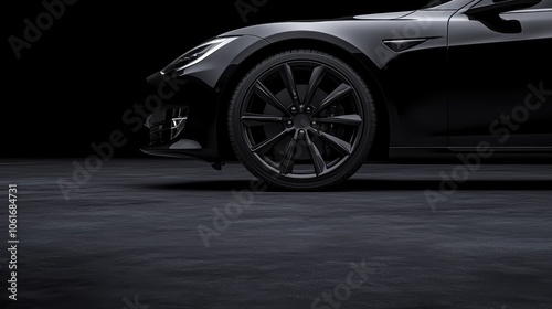 Sleek Black Sports Car Wheel with Chrome Rim and Intricate Spoke Design in Polished Close-Up Detail