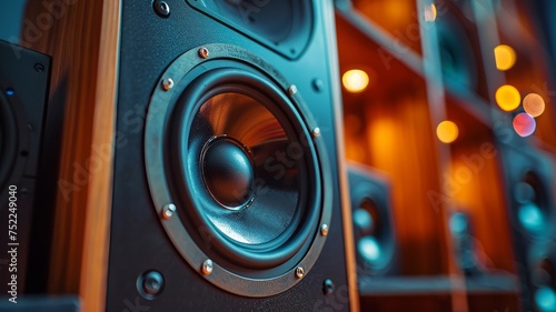 Sleek bookshelf audio speakers with a soft daylight glow