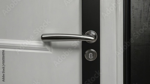 Sleek Brushed Steel Handle and Lock on a Contrasting Black and White Paneled Door