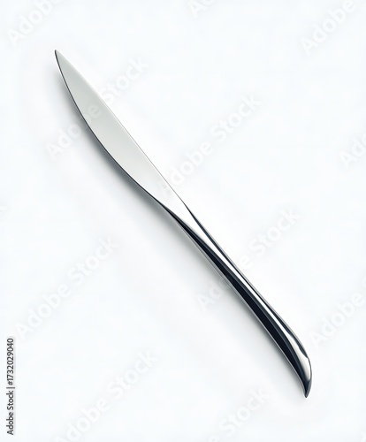 Sleek Dining Knife: A close-up studio shot captures a gleaming, modern dining knife, highlighting its sharp blade and elegant handle. Perfect for culinary content and kitchen themes.