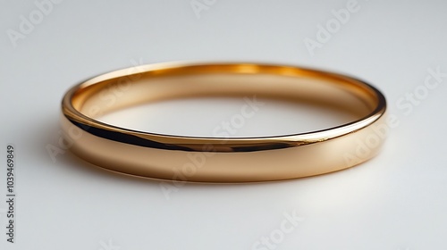 Sleek gold bangle with smooth edges centered on a minimalistic white background showcasing the simple elegance of modern jewelry design