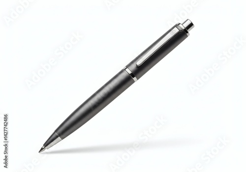 Sleek metal pen on white backdrop