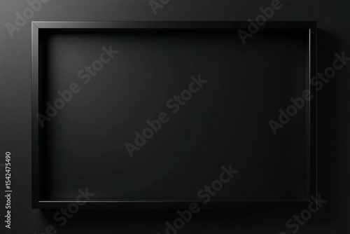 Sleek, minimalist black frame on black backdrop, design, shadow
