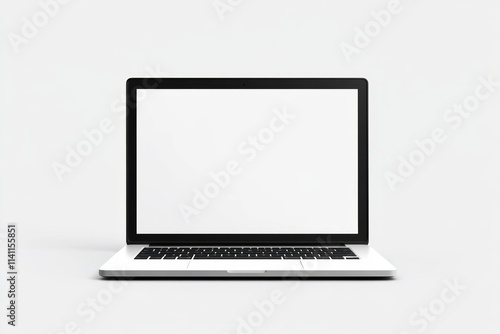 Sleek modern laptop with blank screen on minimalist light gray background