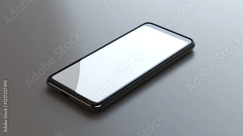 Sleek phone mockup, blank screen, gray surface, tech advert