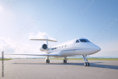 sleek private jet parked on clear runway set against cloudless sky with ample copy space