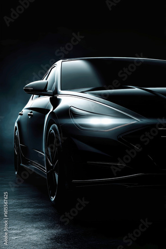 Sleek silhouette of a luxury sports car captured in shadowy allure against a black backdrop