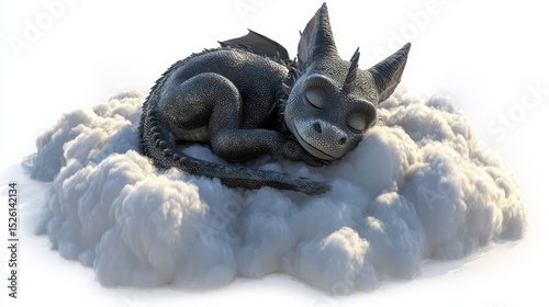 Sleepy dragon resting peacefully on a fluffy cloud.
