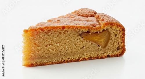 slice of Indiana persimmon pudding cake isolated on white background for dessert or bakery photography