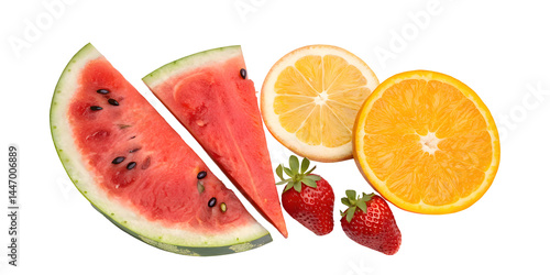 Slice of watermelon and fruits