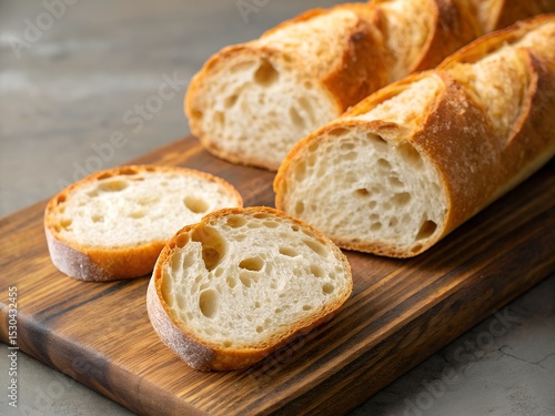 Sliced Baguette Halves Displaying Airy Interior Texture and Golden Crust Detail