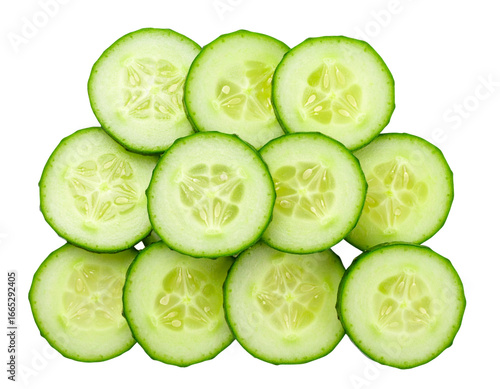 Sliced Cucumber Rounds Stacked in a Tower, Top-Down Angle, isolated