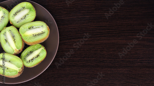 sliced kiwi on a plate, on a dark background