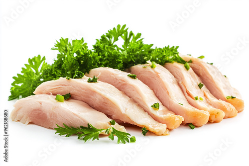Sliced raw chicken meat isolated on a white background
