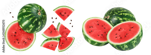 Slices of watermelon isolated on white background. Top view. Flat lay