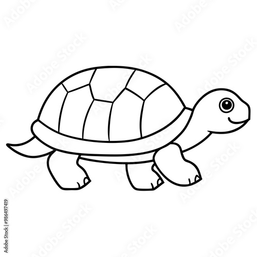 Slow-Moving Minimalist Box Turtle with Patterned Shell Vector