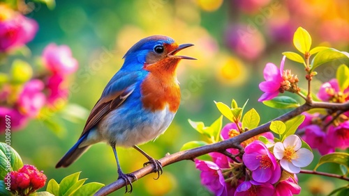 Small Bird Singing on a Branch - Nature's Melodic Beauty in Panoramic View