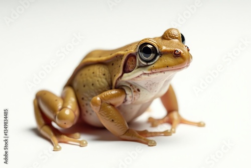 Small brown frog against pure white, showing texture, nature, small frog