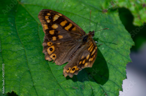 Small butterfly on a green leaf