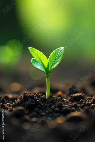Small green sprout breaking through decaying earth, decay, foliage, plant