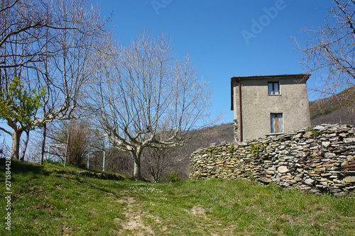 small house in the mountains abandoned in a large green clearing on the Apuan Alps in Tuscany, Tuscan Apennines