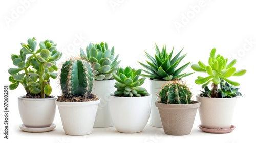 small indoor plants , various cactus and succulent plants in pot. isolated on white or transparent PNG