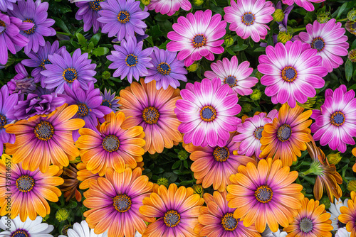 Small Multicolored Chrysanthemums Pattern, Natural Blooming Texture Background Top View