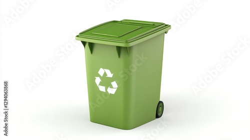 Small recycling trash can with an eco-friendly icon, white background