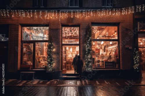 Small shop store front at Christmas