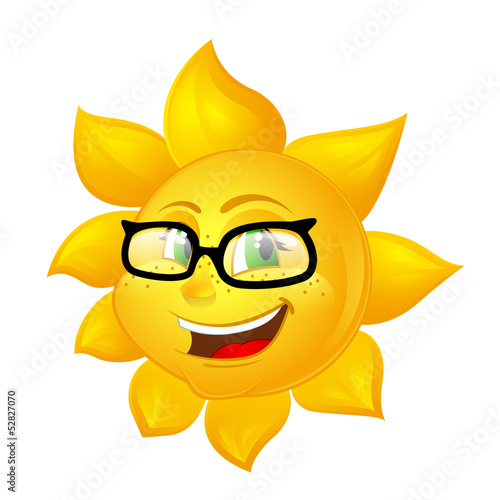 smart cartoon sun in glasses