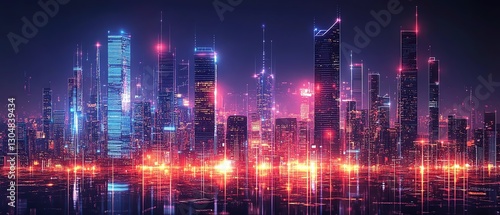 Smart futuristic city grid with energy monitoring, connected buildings and vehicles, eco urban planning, showcasing sustainability, data flow, and efficient infrastructure