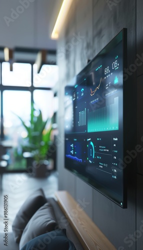Smart Home Energy Management System Interface in Modern Minimalistic Interior with Real-Time Energy Data