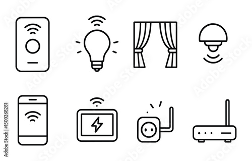 Smart home linear icons set – automation, technology, wireless symbols