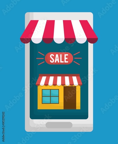 smartphone and shopping related icons over blue background. colorful design. vector illustration