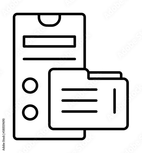 Smartphone file folder icon. Simple line, outline of phone application icons for ui and ux, website or mobile application on white background