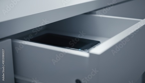 Smartphone stored in drawer as digital detox concept