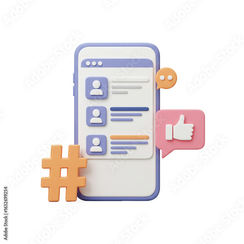 Smartphone with Social Media Interface and Colorful Speech Bubbles