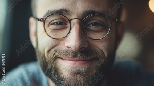 Smiling Bearded Man with Glasses in a Casual Setting.