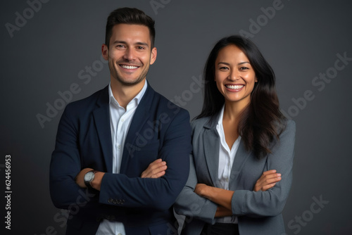 Smiling Business Duo Showcasing Unity and Joy. Generative AI