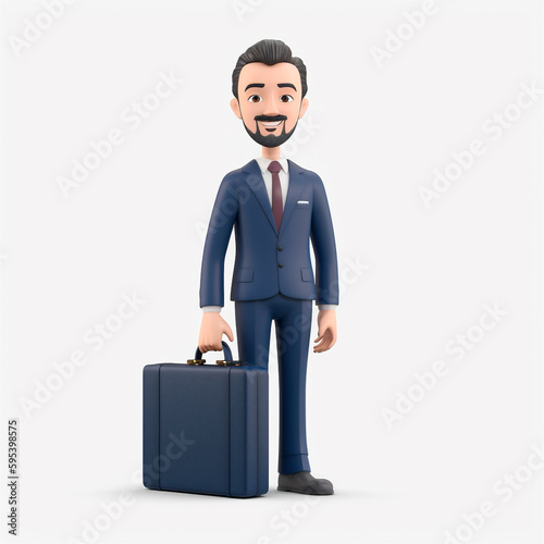 smiling business man holding briefcase isolated on white background. 3D cartoon style. AI generated