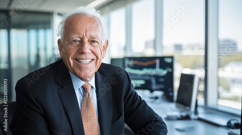 Smiling businessman in office, showcasing confidence and professionalism.