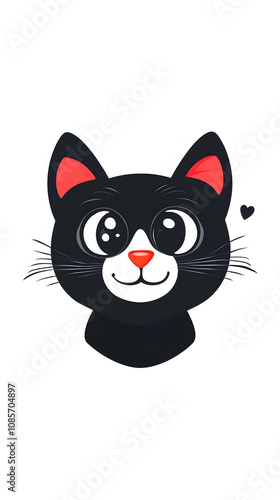 Smiling cartoon kitty sitting with a mouse, a cute and funny feline character