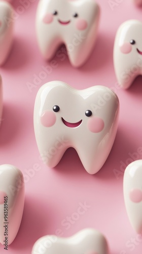 Smiling cartoon teeth with rosy cheeks on
