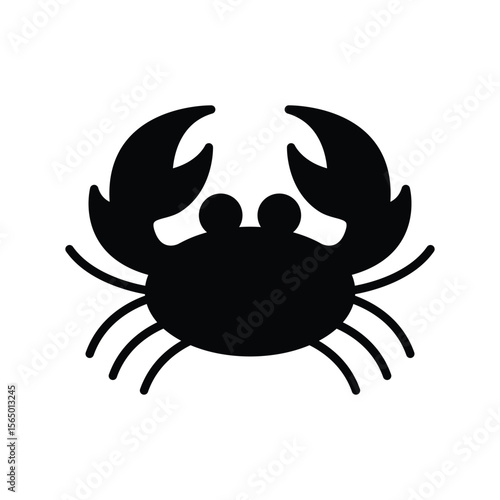 Smiling Crab Vector Silhouette, Fun Sea Creature Icon for Beach-Themed Designs.