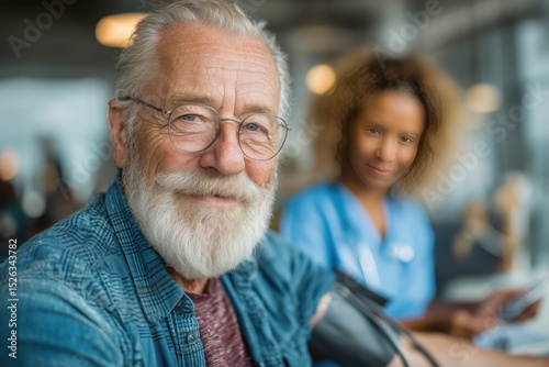 Smiling Elderly Man Getting Blood Pressure Checked by a Doctor – Senior Health and Trust