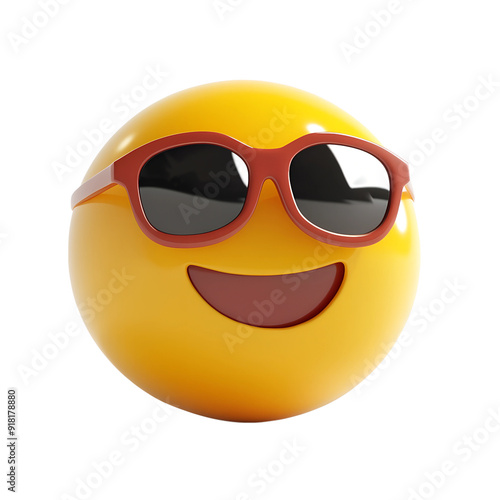 Smiling face with sunglasses three-dimensional emoji,3d cheerful glasses emoji isolated on transparent background, Happy sun emoji,png,3d smiling face emoji with expression sun glasses on, transparent
