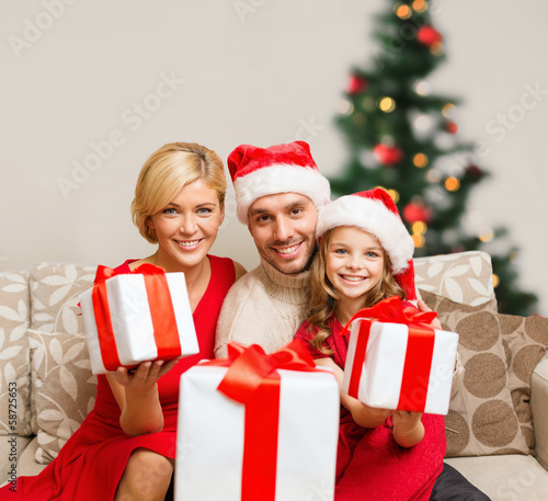 smiling family giving many gift boxes
